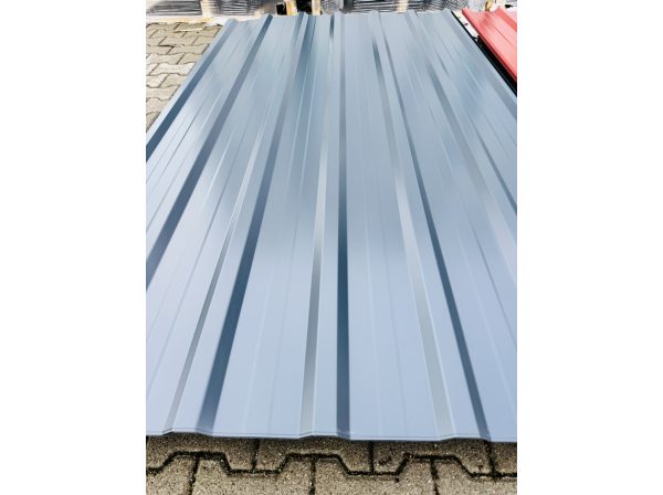 A T18 Plusz profilú trapézlemez RAL 7016 (antracit szürke) színben a modern építészet kedvence. Ez a sötétszürke árnyalat elegáns, indusztriális megjelenést kölcsönöz az épületeknek, és messze a legnépszerűbb választás a gondozásmentes kerítések építéséhez.